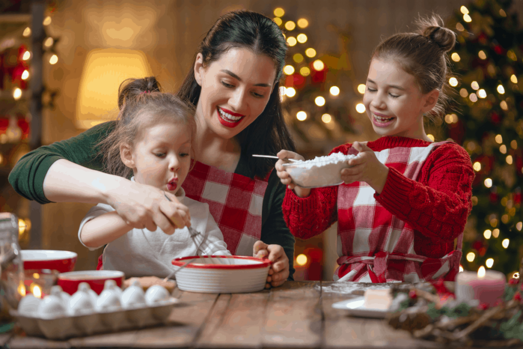 A karácsonyi hangulatban készítsünk közösen süteményeket, ajándékokat vagy akár díszeket! Bevonhatjuk őket valamilyen döntésbe is, természetesen a fejlődési szintjüknek megfelelően, „Milyen díszt tegyünk az ünnepi asztalra?”, „Segítenél kiválogatni a legszebb süteményeket?”. Garantált a mosoly és az öröm. 🙂