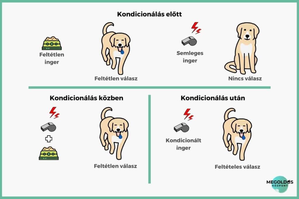 Ivan Pavlov a tanulási folyamatokat kutatta. Arra jött rá, hogy bizonyos ingereket könnyen összekapcsolunk más ingerekkel, még akkor is, ha esetleg nincsen egymáshoz közük. A leghíresebb kutatása során amikor a kutya elé tette az ételt, megszólaltatott egy csengőt. A kutya alapvetően nyáladzani kezdett, amikor meglátta az ételt, de a csengőre önmagában nyilvánvalóan nem adta ezt a reakciót. Azonban miután többször is megszólalt a csengő, minden alkalommal, amikor enni kapott, már csak a csengő hangjára is elkezdett nyáladzani.