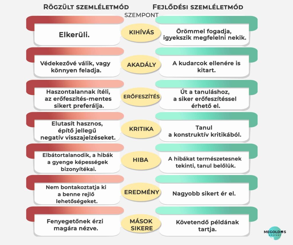 A rögzült és a fejlődési szemléletmód összehasonlítása.